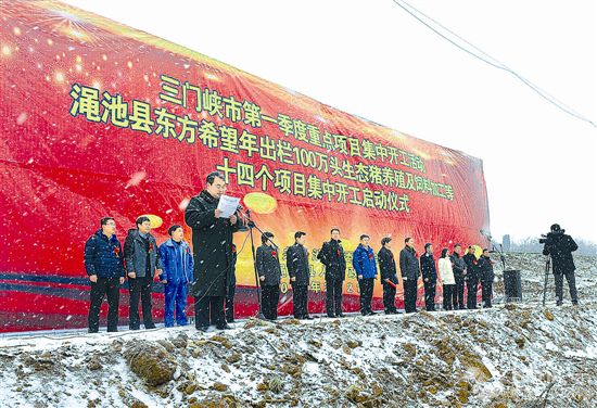 本報(bào)訊 (《今日澠池》記者段濤 通訊員楊麗娟)春雪紛飛降祥瑞,項(xiàng)目開工齊歡呼。2月21日,在果園鄉(xiāng)路村項(xiàng)目工地,澠池縣舉行了全市2017年第一季度重點(diǎn)項(xiàng)目集中開工活動(dòng)暨澠池東方希望年出欄100萬頭生態(tài)豬養(yǎng)殖及飼料加工等14個(gè)項(xiàng)目的集中開工啟動(dòng)儀式。