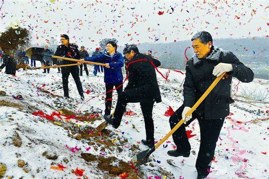 開工儀式后,楊躍民、周建文等縣領(lǐng)導(dǎo)和企業(yè)家代表共同為項(xiàng)目開工培土奠基。