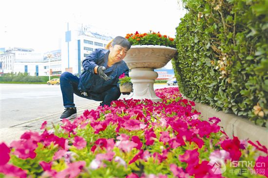 市園林科研所日前組織職工在開發(fā)區(qū)轉(zhuǎn)盤、中日友好苑等處共擺放更換一串紅、孔雀草、萬壽菊等各色花卉4萬余盆,喜迎國慶佳節(jié)。記者張朝峰攝