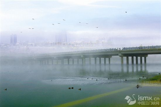 ![]() 11月13日,盧氏縣城外的洛河上水汽蒸騰,百鳥翔集,新建的迎賓洛河大橋即將竣工。