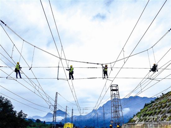 ![]() 7月4日,蒙華鐵路施工人員在盧氏縣五里川段為即將開通運(yùn)行的火車編織輸送電流的接觸網(wǎng)。 鐵路上空架設(shè)的密密麻麻的電線網(wǎng)專業(yè)名詞稱之為“接觸網(wǎng)”,是現(xiàn)代電氣化鐵路的重要組成部分。中國鐵建電氣化局集團(tuán)承建跨越晉、豫、鄂三省735.36公里的蒙華鐵路四電工程項(xiàng)目,其中接觸網(wǎng)架設(shè)2109.23公里,目前正在緊張有序施工中。 程專藝 李玉剛 攝
