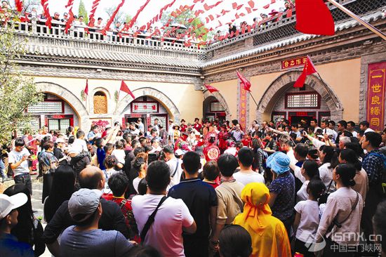 ![]() 10月2日,陜州地坑院里一場豫西傳統(tǒng)婚禮表演正在進行,院上院下擠滿了游客。