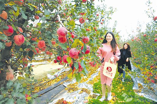 ![]() 11月11日,兩名游客在三門峽二仙坡蘋果生產(chǎn)基地采摘蘋果。