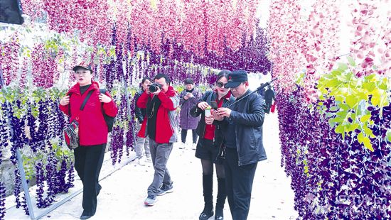 ![]() 11月11日,盡管時(shí)令已進(jìn)入冬日,澠池縣洪陽(yáng)鎮(zhèn)柳莊村觀光園內(nèi)仍然游客如織。圖為游客在欣賞園內(nèi)搭建的植物花棚。