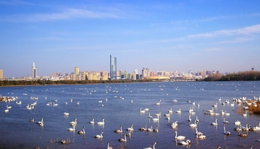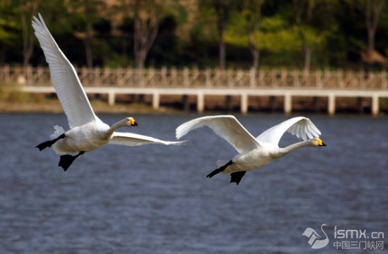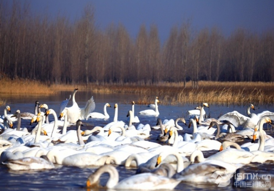 初冬的三門峽,藍天白云,空氣清新,大批的白天鵝從千里之遙的西伯利亞經過長途跋涉,陸陸續(xù)續(xù)返回三門峽越冬。11月19日,晴空萬里,湖水位316.7米,黃河水位315.2米,人工湖317.2米,截止上午10點,三湖共有天鵝2090只,其中青龍壩觀賞臺950只,湖堤路東觀鳥屋70只,北環(huán)320只,蒼龍湖630只,人工湖120只。15日,天鵝湖共有1668只,4天增加400多只。
