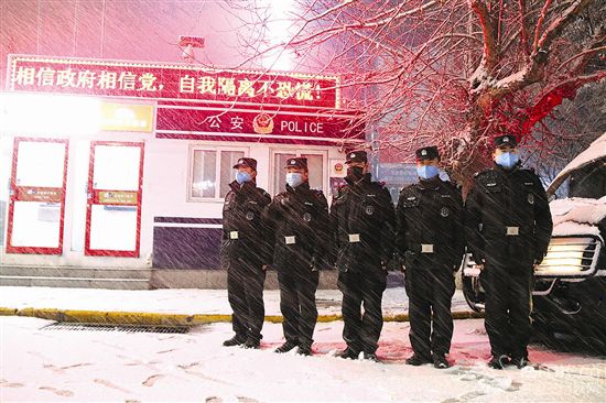 ![]() 民警在風(fēng)雪中堅守崗位,維護社會穩(wěn)定。
