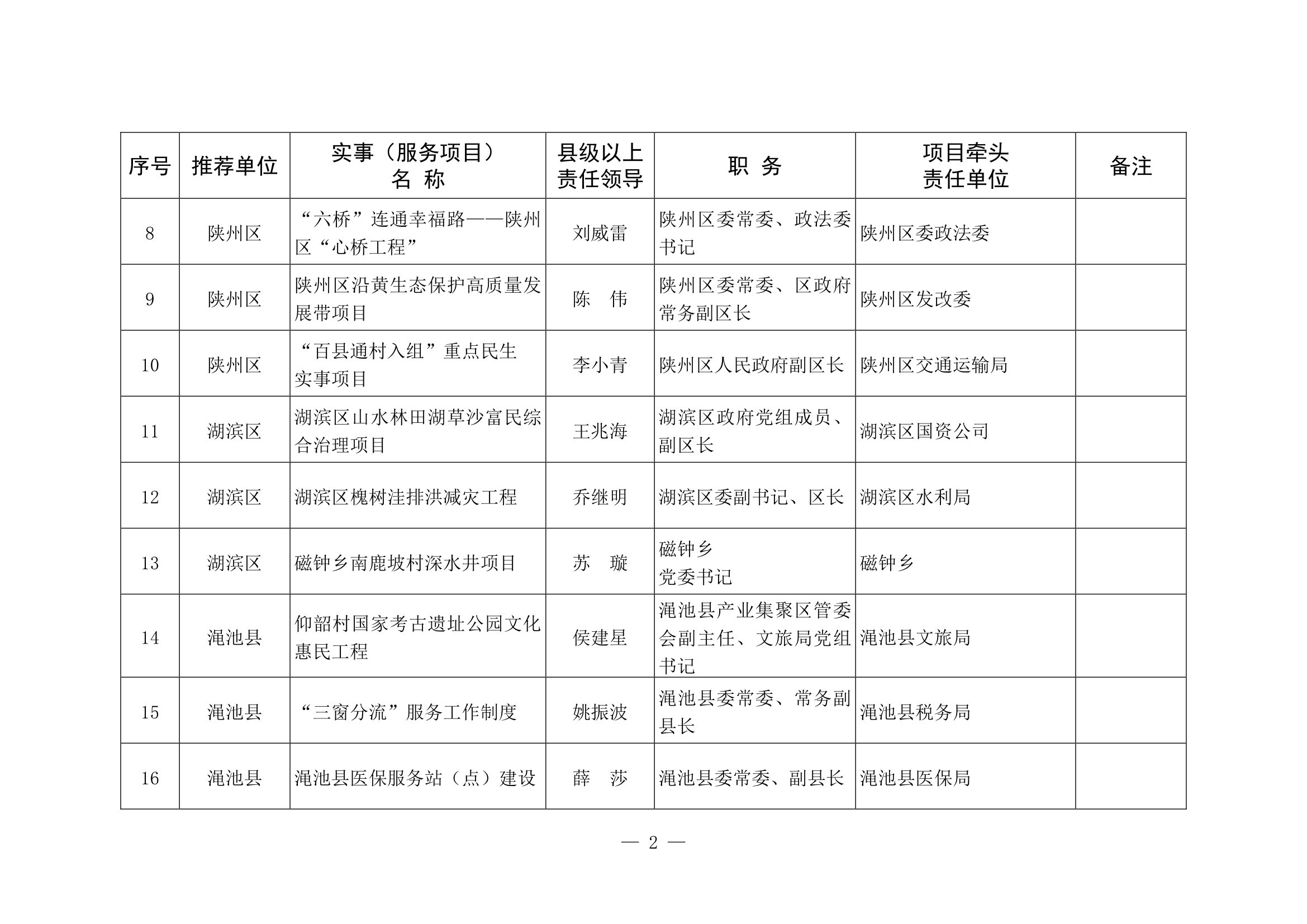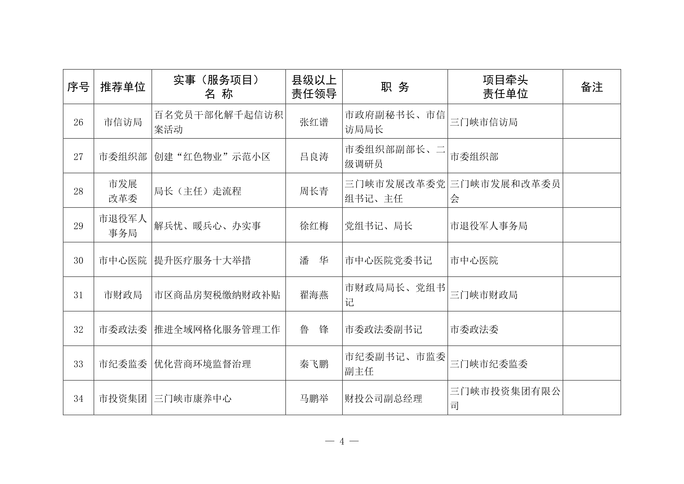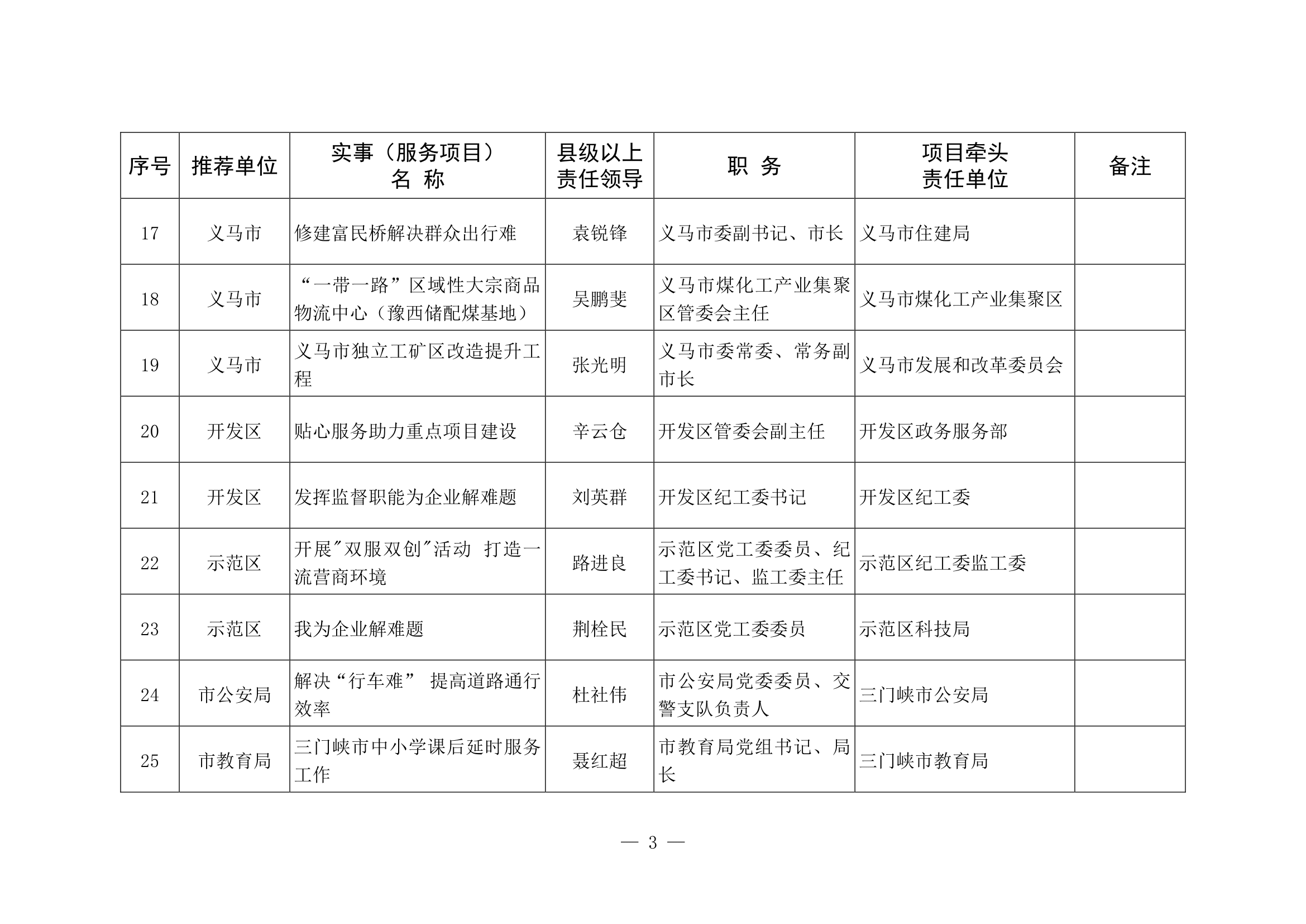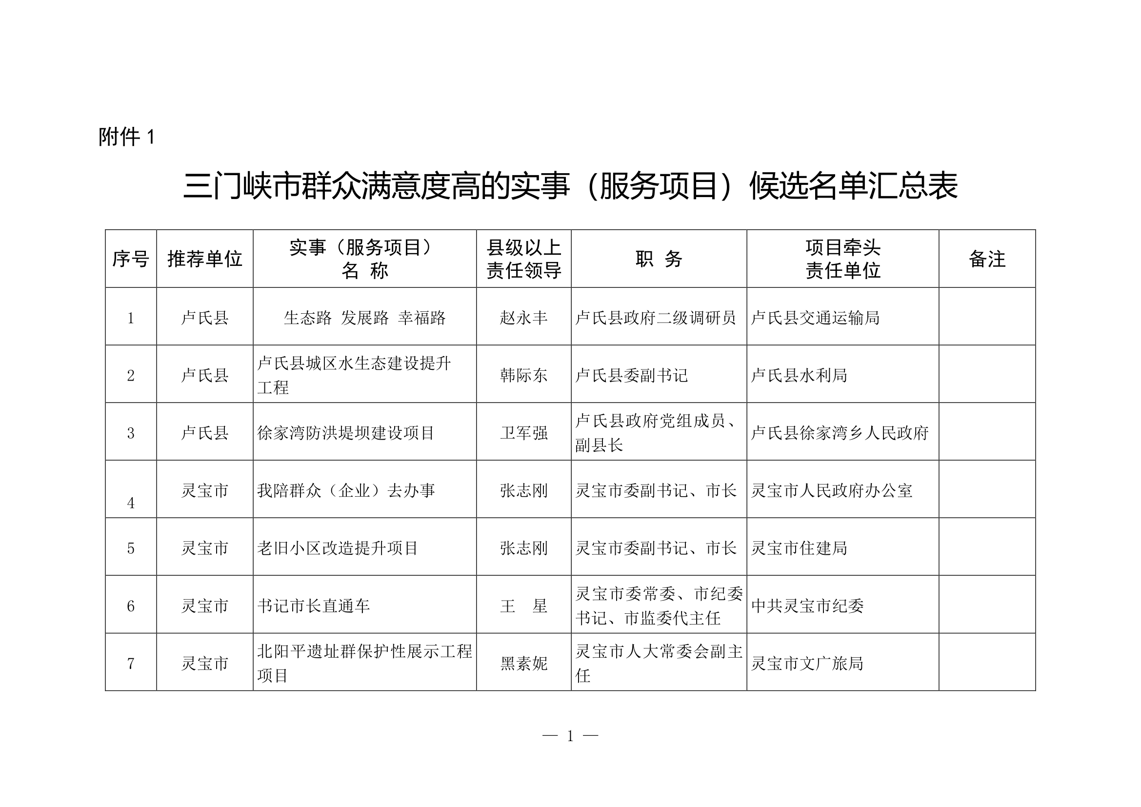 三門峽市群眾滿意度高的實事(服務項目)候選名單匯總表