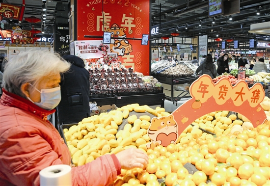 臨近春節(jié),我市重點生活物資供應和儲備充足,各大商場及菜市場物資供應齊全,價格平穩(wěn)。圖為近日,市民在市區(qū)一家超市選購新鮮果蔬。 本報記者 張朝峰 攝