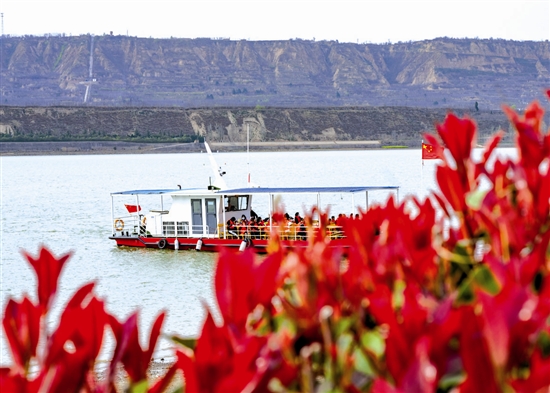 3月26日,沿黃生態(tài)廊道春意盎然,水清、河暢、岸綠、景美……圖為游人乘坐輪船、快艇游覽黃河美景。 本報記者 杜杰 顧新風(fēng) 攝