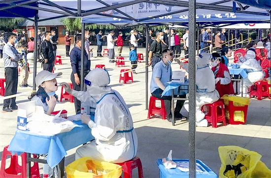 ![]() 近期,國內(nèi)疫情多點(diǎn)散發(fā)與局部聚集性疫情并存,疫情防控形勢(shì)嚴(yán)峻復(fù)雜。5月6日,三門峽市主城區(qū)開展新一輪核酸檢測(cè)工作,“大白”和“小紅”冒著高溫,在各個(gè)核酸采樣點(diǎn)認(rèn)真為市民服務(wù),筑起抗疫的“鋼鐵長(zhǎng)城”。圖為當(dāng)日,市區(qū)黃河廣場(chǎng)核酸采樣點(diǎn)工作場(chǎng)景。 本報(bào)記者 杜杰 攝 |