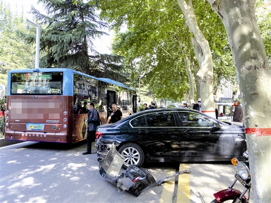 ![]() 5月18日上午9時許,在三門峽市區(qū)崤山路一羊肉湯館門前,一輛陜A牌照的寶馬轎車車主因疏忽忘記拉手剎,導(dǎo)致該車溜車與一輛正常行駛的公交車相撞,一度造成交通擁堵,所幸無人員受傷。 在此提醒廣大司機朋友,停車莫匆忙,切記拉手剎。 本報記者 杜朝霞 攝 |