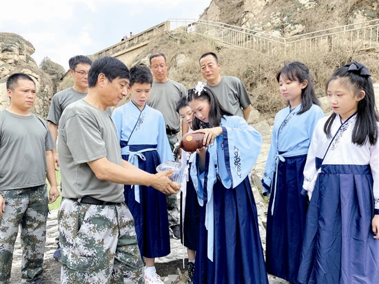 ![]() 本報(bào)訊 為讓青少年通過研學(xué)活動(dòng)傳承弘揚(yáng)黃河文化,講好黃河故事,7月20日,由沿黃九省(區(qū))教育廳聯(lián)合主辦,三門峽市示范性綜合實(shí)踐中心承辦的“行走河南 品鑒濟(jì)南”研學(xué)課程實(shí)踐活動(dòng)(三門峽站)正式啟動(dòng)。 當(dāng)天,該中心老師帶領(lǐng)6名小學(xué)生一起前往三門峽大壩取黃河水;顒(dòng)現(xiàn)場,小學(xué)生們身著漢服,抱著富有仰韶文化氣息的尖底彩陶器皿,步行到達(dá)取水點(diǎn),緩緩將器皿放入河中,成功將黃河水裝入器皿(如右圖)。隨后,標(biāo)有“北緯34°49′,東經(jīng)111°20′,2022年7月20日取水于三門峽大壩”字樣的黃河水水樣于當(dāng)日寄往山東省濟(jì)南市,用于參加“行走黃河 品鑒濟(jì)南”研學(xué)課程實(shí)踐活動(dòng)啟動(dòng)儀式;顒(dòng)最后,師生們共同喊出:“喜迎二十大,守護(hù)母親河,我在三門峽等你。” “紙上得來終覺淺,絕知此事要躬行。這個(gè)活動(dòng)太有意義了,之前只是在網(wǎng)絡(luò)上看到大壩泄洪后的場景,在課本上讀過賀敬之的《梳妝臺(tái)》,今天到了現(xiàn)場,才真正感受到黃河的雄偉壯觀,回去后我要把所見所聞講給小伙伴們聽。”一名小學(xué)生激動(dòng)之情溢于言表。 據(jù)了解,“行走河南 品鑒濟(jì)南”研學(xué)課程實(shí)踐活動(dòng)由沿黃9省(區(qū))教育廳聯(lián)合組織,此次取黃河水活動(dòng)為系列活動(dòng)其中一項(xiàng),旨在通過研學(xué)實(shí)踐這根主線,串起不同區(qū)域的歷史文化,引導(dǎo)廣大青少年學(xué)生用腳丈量黃河,用耳傾聽黃河故事,用心感受黃河脈搏,深入了解黃河流域生態(tài)保護(hù)和高質(zhì)量發(fā)展重大國家戰(zhàn)略,切實(shí)增強(qiáng)對中國特色社會(huì)主義的政治認(rèn)同、思想認(rèn)同、理論認(rèn)同和情感認(rèn)同,立志聽黨話、跟黨走。 (文/圖 崔盼盼) |