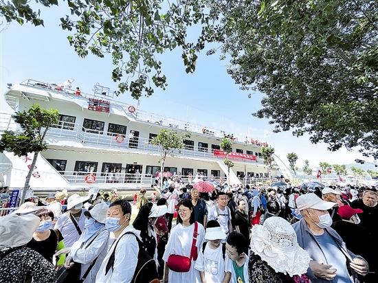 ![]() 來自陜西渭南的三姐妹在“天鵝號”游輪上與黃河合影留念 ![]() 游客排隊乘坐“天鵝號”游輪 ![]() 游客品嘗非物質(zhì)文化遺產(chǎn)——靈寶肉夾饃 ![]() 豫劇《穆桂英掛帥》 ![]() 陜州鑼鼓書《陜州十碗席》 仲夏時節(jié),萬物并秀,楊柳青青,河水漣漪。“去陜州公園一號碼頭趕非遺大集”成為近期三門峽市民耳熟能詳?shù)?ldquo;熱詞”。 婉轉(zhuǎn)動聽的豫劇、激情高亢的陜州鑼鼓書、精致靈巧的面塑手工藝品、風味獨特的非遺特色美食……非遺項目集體亮相,一場可觀看可品嘗可體驗的非物質(zhì)文化遺產(chǎn)大集精彩開啟。為全面貫徹落實文化和旅游部、國家文物局工作部署,以及市委、市政府關(guān)于打造黃河流域生態(tài)保護和高質(zhì)量發(fā)展示范城市、黃河文化傳承創(chuàng)新示范城市、省際區(qū)域現(xiàn)代化中心城市總體要求,進一步增強人民群眾文化遺產(chǎn)保護意識,傳承弘揚中華優(yōu)秀傳統(tǒng)文化,推進文旅融合,鮮亮文旅品牌,發(fā)展文旅經(jīng)濟,打造文化強市,6月10日,三門峽市2023年“中國文化和自然遺產(chǎn)日”文化遺產(chǎn)宣傳展示活動在陜州公園內(nèi)舉行。市文廣旅系統(tǒng)各級黨員干部職工,陜西省西安市、渭南市游客,媒體記者及市民群眾共3000余人齊聚風景宜人的黃河岸邊,一起暢享非遺購、探訪非遺味、共赴非遺游。 上午9時,伴隨著響徹云霄的銅鑼聲,三門峽市非物質(zhì)文化遺產(chǎn)大集鳴鑼開市。由市文廣旅局聯(lián)合各縣(市、區(qū))文旅部門、市文化館、市非物質(zhì)文化遺產(chǎn)保護中心、市文旅集團北方游船公司、各博物館舉辦,采取了“主場啟動、多點聯(lián)動”的方式進行宣傳展示。全市依托非遺展示館、演習所、博物館、旅游景區(qū),共組織開展“云游崤函非遺美食”、《非物質(zhì)文化遺傳法》作品展、“我在廟底溝學考古”科普圖片展等各類活動30項,其中線下活動22項、線上活動8項。作為本次文化遺產(chǎn)宣傳展示活動的主會場,陜州公園一號碼頭匯聚了陜州鑼鼓書、木偶戲、捶草印花技藝、十碗席等25個代表性非遺項目;在“天鵝號”游輪上,還為市民游客安排了精彩的非物質(zhì)文化遺產(chǎn)展演和文藝節(jié)目,真正讓文化遺產(chǎn)“活起來”“潮起來”,讓旅游度假更鮮活、更生動。 逛大集、享“舌尖上的非遺” 非遺展區(qū)內(nèi)人頭攢動,大集上熱烈而歡快的玄天鑼鼓吸引了許多市民游客駐足觀看,霎時間,大集成了鼓聲、鑼聲、笑聲的海洋。與此同時,捶草印花、陜州剪紙、皮影、大營麻花制作技藝等非遺傳承人通過非遺作品展示和手工藝現(xiàn)場展演等方式,與趕大集的市民游客互動交流,通過原汁原味的細節(jié)呈現(xiàn),讓大家真實感受非遺的風采。大家邊走邊看,邊看邊選,不亦樂乎。 “陜州剪紙最早可以追溯到夏、周時期,因為夏朝有崇尚黑色的習俗,所以,陜州剪紙最初也是以黑色為主,甚至在春節(jié)和結(jié)婚等喜慶場合,也大量使用黑色剪紙,這和全國其他地方喜慶場合忌諱黑色有顯著不同……”在陜州剪紙展區(qū),傳承人一邊展示剪紙技藝,一邊講述著陜州剪紙的歷史。一張黑紙、一把剪刀,經(jīng)過傳承人一雙巧手的反復折疊剪切,一幅精美的剪紙作品即刻呈現(xiàn)出來。 “太精致了,我要把這一對娃娃工藝品放在我的書桌上面!”在靈寶面塑展區(qū)前,路過的孩子們被眼前顏色鮮艷、栩栩如生的面塑人物深深吸引,一時間挑花了眼。靈寶面塑,也稱“面花”“禮饃”“花糕”,是省級非物質(zhì)文化遺產(chǎn)。一坨坨白面團,經(jīng)過面塑手藝人的巧手揉捏,指尖搓、壓、點、切、畫,一個個栩栩如生、顏色鮮亮、活靈活現(xiàn)的面塑作品就出現(xiàn)在展臺前,令人眼前一亮。 曾登上央視《舌尖上的中國》的陜州十碗席展位前也是人頭攢動。“十碗席包括扣碗肉、小酥肉、辣豆腐、燉土雞、雜燴菜、黃花菜、海帶絲、小豆芽、拌芹菜、拌粉條,一共是七熱三涼。十碗水席,寓意著十全十美,要是再配上剛出鍋的大白面饅頭、香酥可口的麻花,那才叫地道正宗。”已年逾古稀的傳承人趙長省向游客介紹著陜州十碗席的品類和吃法,獲得前來品嘗購買的游客一致好評。 大營麻花、漿面條、黑水變蛋、靈寶肉夾饃、橡子涼粉、佛手糖糕……一道道非遺美食令人垂涎三尺。覽豫西民俗,嘗特色風味,市民游客透過舌尖和指尖,感受崤函的味道與魅力。 好吃、好玩、好看的非遺,吸引不少當?shù)厥忻袂皝泶蚩āJ忻癫芟壬患胰趯3虖臐瞥刳s到大集游覽。“我專門帶著孩子過來參觀,這次活動內(nèi)容很豐富,也非常有意義。孩子對陜州剪紙非常感興趣,看完傳承人的展示后,自己還主動搜索學習這方面文化的知識!”曹先生說,“希望通過今天的活動,讓孩子更加了解我們的非物質(zhì)文化遺產(chǎn),在心中種下非遺的種子。” 與非遺展演完美邂逅 此外,“天鵝號”游輪上的非遺展演也是本次活動的一大亮點。 登上“天鵝號”游輪,蔚藍的天空、磅礴的黃河,金燦燦的陽光灑在河面上,如寶石般璀璨奪目。游客被三門峽庫區(qū)黃河段山清水秀、碧波蕩漾的美景所吸引,大家爭相拍照打卡,有的游客還即興輕聲吟誦“黃河之水天上來……”此時,船在水中行,人在畫中游,如仙境般的黃河游讓游客如癡如醉…… 頂層甲板上