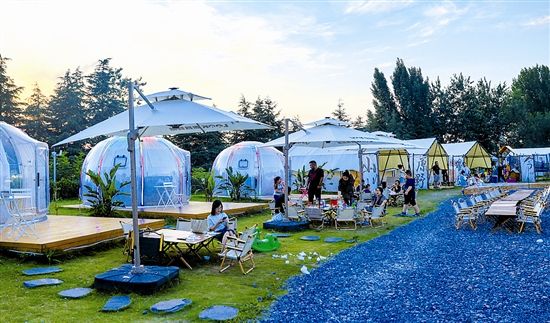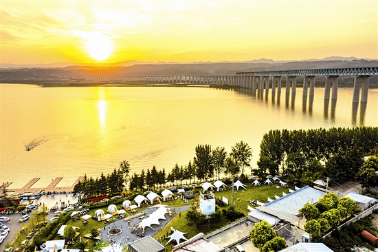 6月14日,三門峽沿黃生態(tài)廊道陜州區(qū)段,清水黃河在落日余暉的映照下金光閃閃,壯美如畫。岸邊的露客營地環(huán)境優(yōu)美,舒適宜人,吸引了周邊市民前來納涼消暑,飽覽夏日黃河美景。 本報記者 孫猛 攝 |