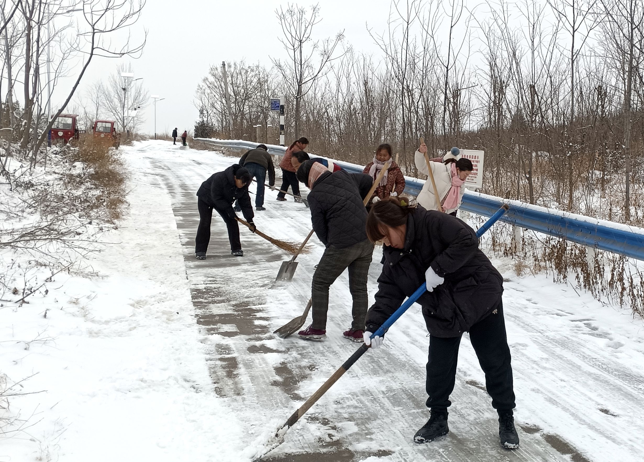 1月20日,寒潮攜降雪席卷陽(yáng)店鎮(zhèn),道路積雪結(jié)冰給群眾出行帶來(lái)極大安全隱患。為保障轄區(qū)道路暢通與群眾出行安全,三門峽市城鄉(xiāng)一體化示范區(qū)(高新區(qū))陽(yáng)店鎮(zhèn)迅速啟動(dòng)應(yīng)急響應(yīng),組織鎮(zhèn)機(jī)關(guān)干部、村組干部及鎮(zhèn)直鎮(zhèn)辦工作人員,全面開展“同心除雪,共筑平安路”專項(xiàng)行動(dòng),以高效舉措和務(wù)實(shí)作風(fēng)筑牢民生安全防線。 雪情就是命令,責(zé)任彰顯擔(dān)當(dāng)。鎮(zhèn)黨委書記孫強(qiáng)帶頭沖鋒在前,帶領(lǐng)機(jī)關(guān)干部職工攜帶鐵鍬、掃帚、鏟雪板等工具,奔赴鎮(zhèn)區(qū)主干道、十字路口等重點(diǎn)路段,投入到緊張的除雪工作中。凜冽的寒風(fēng)中,大家不畏嚴(yán)寒、干勁十足,揮動(dòng)著手中的工具鏟冰除雪,分工協(xié)作、配合默契,構(gòu)成了一幅熱火朝天的除雪畫卷。 在鎮(zhèn)黨委的號(hào)召下,各村黨支部迅速響應(yīng),村支部書記帶領(lǐng)村“兩委”干部、黨員志愿者及熱心群眾,對(duì)村內(nèi)主干道、背街小巷、橋梁坡道等易結(jié)冰路段進(jìn)行集中清理。黨員干部沖鋒在前,群眾們踴躍參與,大家齊心協(xié)力將道路上的積雪和冰層逐一清除,用實(shí)際行動(dòng)踐行“我為群眾辦實(shí)事”的初心使命。 經(jīng)過(guò)數(shù)小時(shí)的奮戰(zhàn),轄區(qū)內(nèi)各主要道路、村口路段的積雪基本清理完畢,為群眾鋪就了一條安全暢通的“暖心路”。過(guò)往群眾紛紛為干部群眾齊心除雪的舉動(dòng)點(diǎn)贊,冬日的寒意被干群同心的暖流驅(qū)散。 此次除雪保暢行動(dòng),不僅保障了群眾的出行安全,更彰顯了陽(yáng)店鎮(zhèn)黨員干部的責(zé)任與擔(dān)當(dāng),拉近了黨群干群關(guān)系。下一步,陽(yáng)店鎮(zhèn)將持續(xù)關(guān)注天氣變化,完善應(yīng)急處置預(yù)案,以更扎實(shí)的舉措守護(hù)轄區(qū)群眾的生命財(cái)產(chǎn)安全,用實(shí)干與擔(dān)當(dāng)筑牢平安防線。(彭紅勇) ( 編輯:tln ) |
