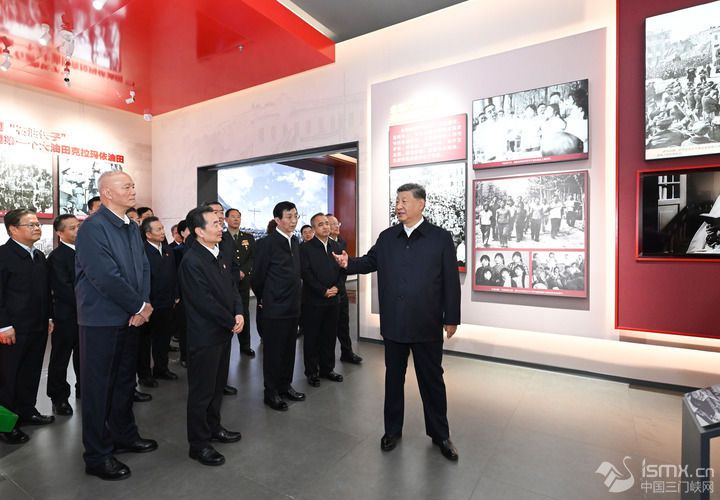 9月24日上午,中共中央總書記、國家主席、中央軍委主席習(xí)近平在烏魯木齊文化中心展覽館參觀新疆維吾爾自治區(qū)成立70周年主題成就展。新華社記者 燕雁 攝 新疆維吾爾自治區(qū)成立時(shí)的歷史視頻,十月拖拉機(jī)廠生產(chǎn)的第一批拖拉機(jī),天山百貨大樓內(nèi)的復(fù)原場景,打贏脫貧攻堅(jiān)戰(zhàn)的新舊對比照片,鑄牢中華民族共同體意識宣傳教育的展板,自治區(qū)擴(kuò)大對外開放的口岸分布圖……習(xí)近平認(rèn)真聽取講解,不時(shí)駐足察看,詳細(xì)詢問有關(guān)情況。他指出,新疆70年主題成就展充滿正能量,令人振奮。要精心組織觀展,通過新舊對比,用鮮活的事實(shí)進(jìn)一步凝聚人心、凝聚力量,激勵(lì)新疆各族干部群眾鑄牢中華民族共同體意識,在共同富裕的道路上不斷創(chuàng)造幸福美好生活。
