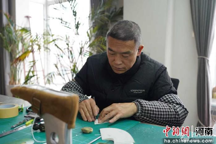 圖為裕雯鞋樣設(shè)計(jì)工作室創(chuàng)始人馬育文展示鞋樣。趙夢(mèng)陽 攝